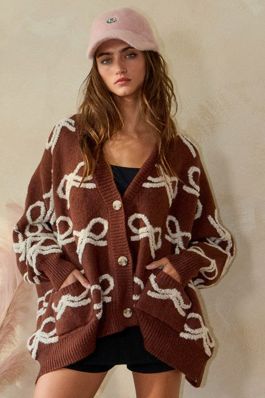 Wrap yourself in cozy comfort with The Bow Cardigan. This oversized cardigan features a classic button down design and is available in sizes medium and small. Perfect for layering and adding a touch of style to any outfit.