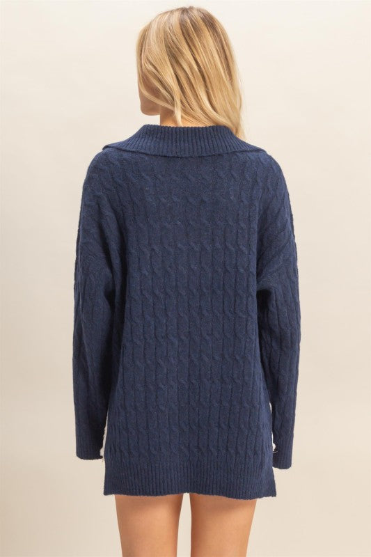Wrap yourself in luxury with The Corrine Navy Sweater, a timeless cable knit masterpiece crafted from impossibly soft materials. This navy essential features a classic textured design that elevates any wardrobe, offering both comfort and sophistication for everyday wear or layered styling. The sumptuous fabric feels as good as it looks, making it the sweater you'll reach for again and again. Perfect for creating effortless, polished looks that transition seamlessly from season to season.